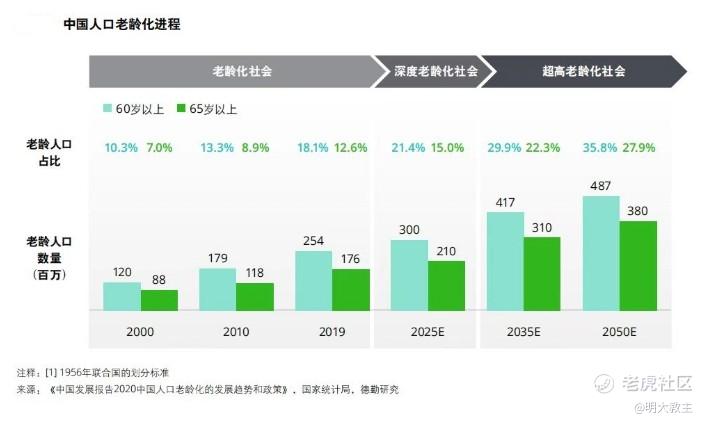 谈中国平安养老业务之前先看下老龄化数据。德勤早年预计我国2025年60岁以上人口占比21.4%,65岁以上人口占比15%。事实上去年末国内60岁、65岁以上老年人口就分别有22%和15.6%,今年底只会更高。