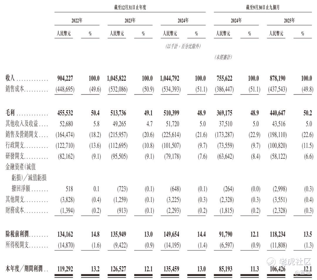 SKG未来健康2025年前9个月营收为8.78亿,上年同期的营收为7.56亿元;毛利为4.41亿,上年同期毛利为3.69亿元;期内利润为1.06亿,上年同期的期内利润为8519万元。