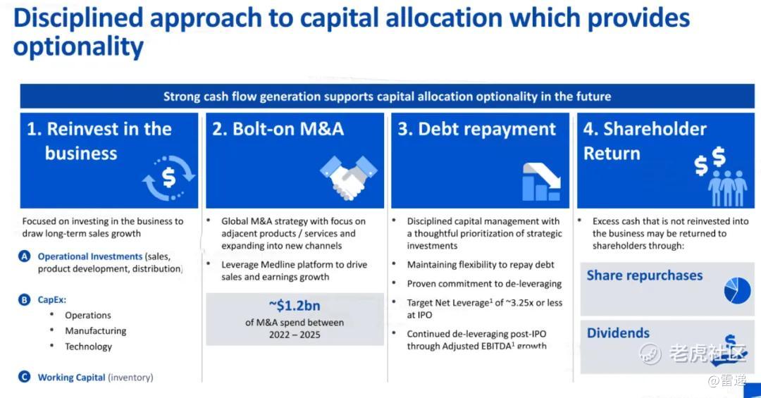 Medline在2022年、2023年、2024年Adjusted EBITDA分别为23.28亿美元、27.68亿美元、33.61亿美元;Adjusted EBITDA Margin分别为10.9%、11.9%、13.2%。