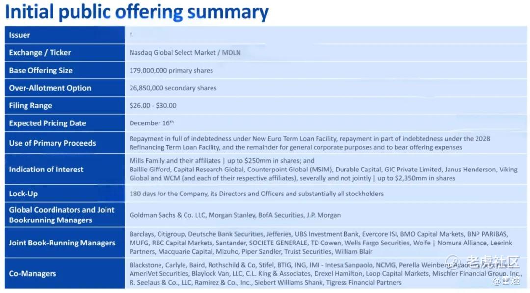 Medline发行2.16亿股,发行价为29美元,募资总额为62.64亿美元。