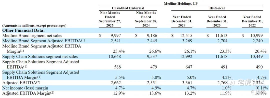 Medline在2025年前9个月Adjusted EBITDA为26.62亿美元,Adjusted EBITDA Margin为12.9%。