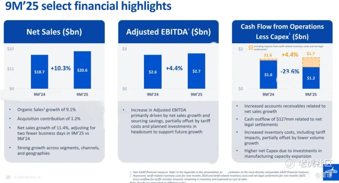 Medline在2025年前9个月营收为206亿美元,上年同期为187亿美元;运营利润为17.87亿美元,上年同期的运营利润为16.54亿美元;净利为9.77亿美元,上年同期的净利为9.11亿美元。