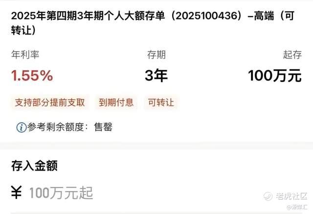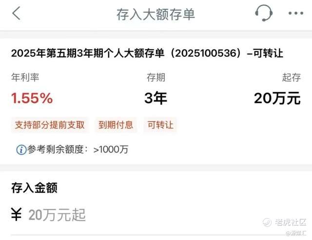早在12月初便有媒体爆出,工行2025年第四期3年期个人大额存单,起步门槛标注为“100万起存”。但是,源媒汇注意到,在随后的第五期3年期个人大额存单中,起存门槛又重新降至20万元。