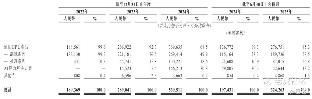 天数智芯2025年上半年来自通用GPU产品收入2.77亿,占比为85.33%,其中,来自训练系列收入占比为58.5%,来自推理系列收入为8702万元,占比为26.8%;来自AI算力解决方案收入为4264万元,占比为13.2%。