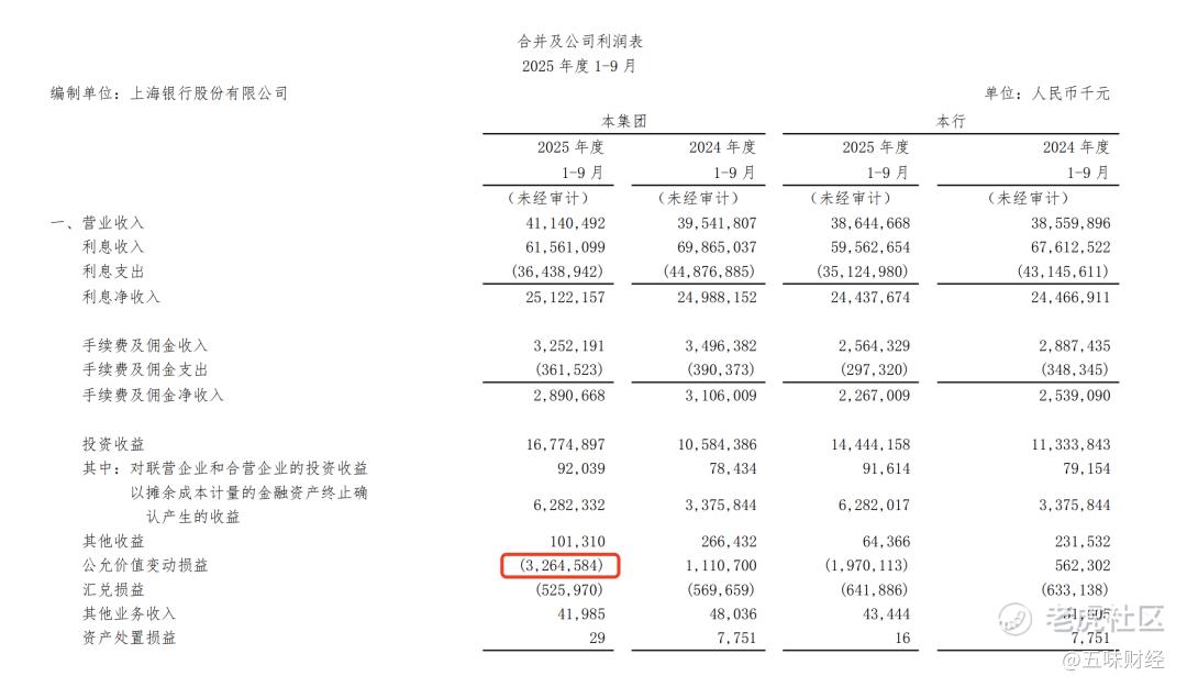 市场担心的是,投资收益虽然能冲业绩,但并非稳定的利润来源。2025年三季报已经亮起红灯,该行在报告期内“公允价值变动损益”项下出现32.65亿元亏损。