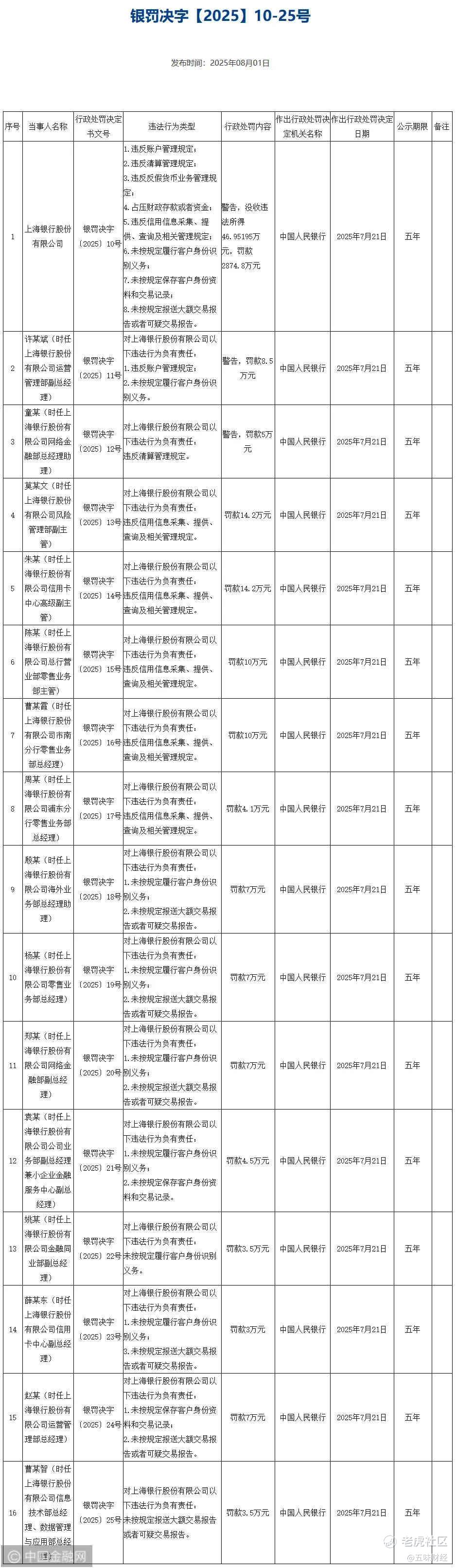 这种治理上的“失配”并非孤例,此前的一次重磅罚单,再次将上海银行的合规短板推向台前。