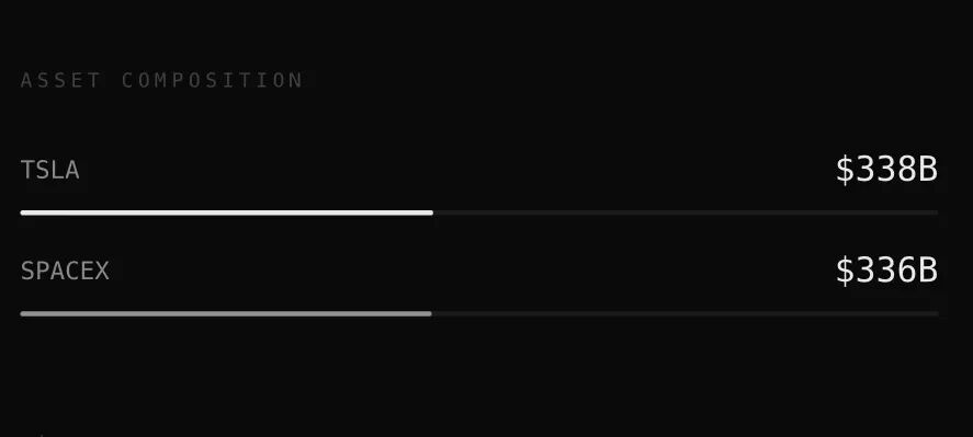 从资产构成来看,马斯克的财富根基建立在双核心引擎之上:特斯拉相关股票总值约3380亿美元,包括12%普通股及恢复的期权;SpaceX股权估值约3360亿美元,该公司本月估值已从4000亿翻倍至8000亿美元。