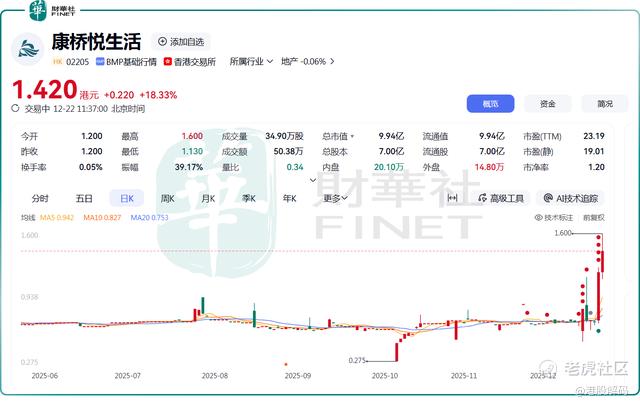 12月22日, $康桥悦生活(02205)$ 股价延续强势表现。