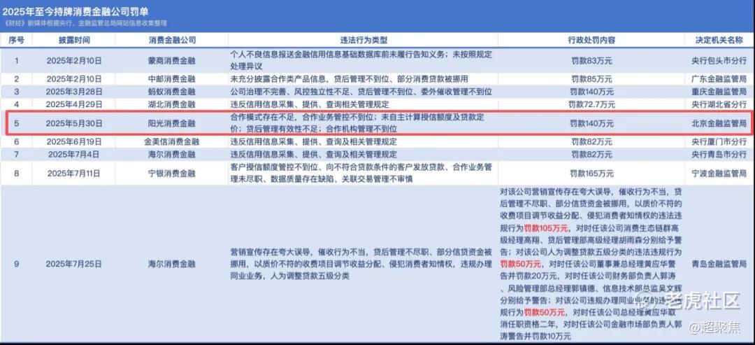 更具讽刺意味的是,报道中点名的部分合作机构自身也有不当行为。例如,阳光消费金融在2025年就因“合作机构管理不到位”、“未自主计算授信额度”等问题,被国家金融监督管理总局北京监管局处以140万元罚款。与这样的“问题伙伴”进行违规合作,无疑加剧了携程的合规风险。