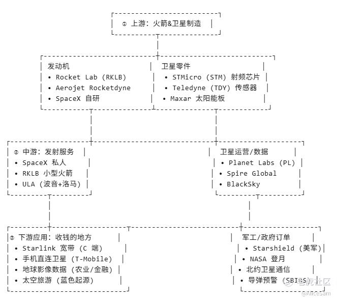 当然还有发射竞争者,例如 $Rocket Lab USA, Inc.(RKLB)$ 估值对标 SpaceX,从一家小型火箭发射公司成长为全栈航天公司,提供包括小型火箭(Electron),未来中型火箭(Neutron)发射服务,以及低轨卫星(LEO)的制造,卫星星座组建与运营,特别在为美国国防部和NASA提供定制化小卫星平台和系统解决方案方面表现突出,目标是成为类似SpaceX的“小型主承包商”。若 SpaceX 估值拉太高,RKLB 就有可能成为“估值洼地” 。