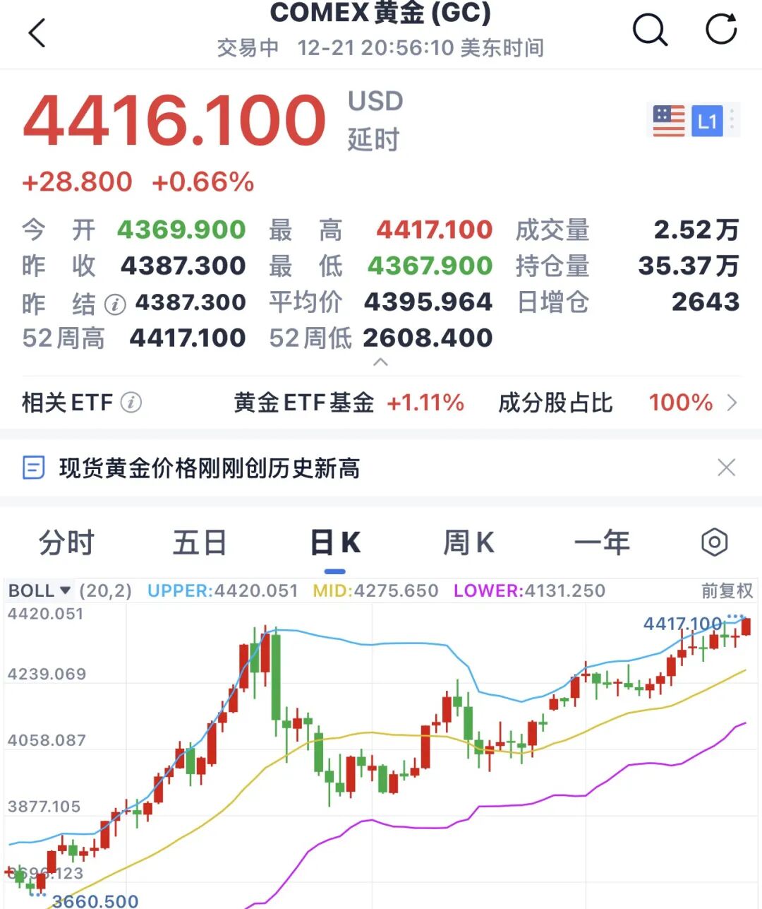 盘整两个月的黄金今天冲击2025/10/20日的前期高点,终于突破压力再创新高。白银跟涨创新高$68.64。
