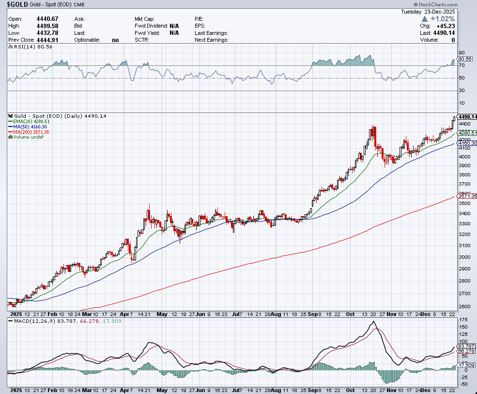 l黄金:2月份交割的黄金期货结算价上涨0.8%,至每盎司4,505.7美元,盘中曾创下4,530.80美元的历史新高。现货黄金上涨1.02%,报每盎司4490.14美元。今年至今涨幅为71.09%。