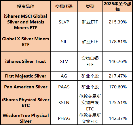l矿业股票及ETF:投资如Pan American Silver (PAAS)、First Majestic Silver (AG)、Global X Silver Miners ETF (SIL)、iShares MSCI Global Silver and Metals Miners ETF(SLVP)。