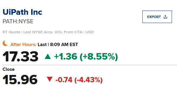 UiPath(PATH)股价在盘前交易中走高,该公司即将加入S&P MidCap 400指数。