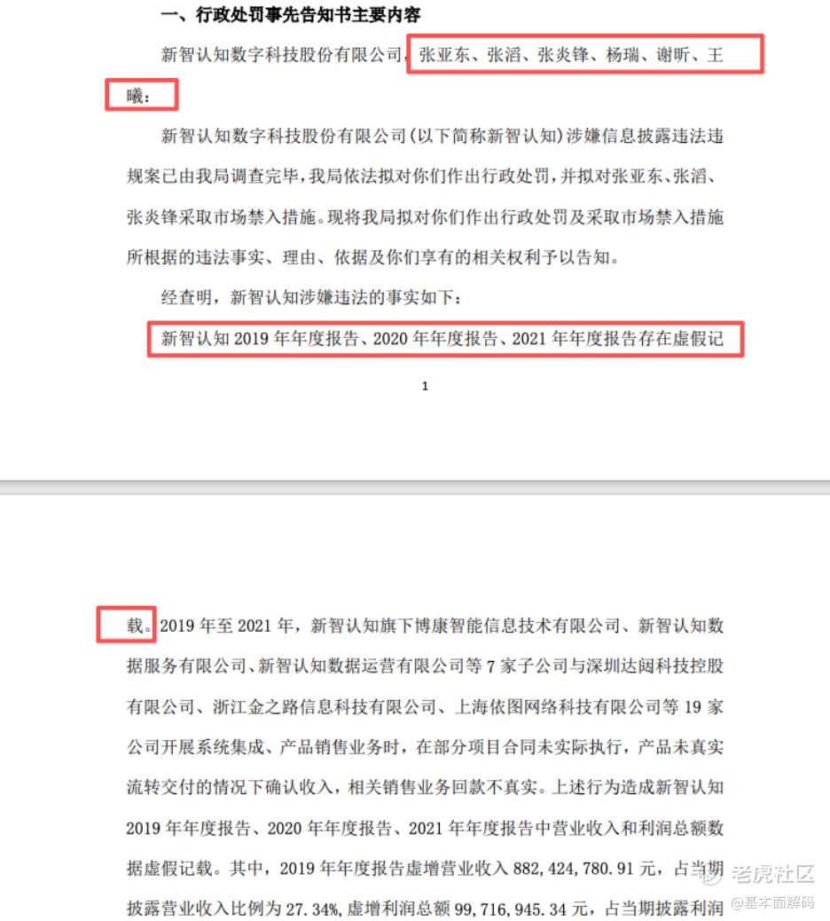 根据中国证监会广西监管局于2024年11月下发的《行政处罚事先告知书》及相关决定,新智认知在2019年至2021年期间,通过虚构销售业务、产品未真实流转交付等手段,上演了一出长达三年的“数据幻术”。公告数据显示,三年间合计虚增营业收入高达10.19亿元人民币,虚增利润总额1.32亿元人民币。尤其是在2019年,虚增营业收入达到8.82亿元,占当年披露营收比例达到了27.34%;虚增利润总额9,971.69万元,占当年披露利润总额的43.70%。随后两年,虽然比例有所下降,但造假行为依然惯性延续,2020年及2021年分别虚增利润1,768.34万元和1,405.58万元,其中2021年虚增利润占比甚至达到了159.81%。这一连串精确到小数点的造假数据,不仅揭示了企业内控的问题,更直指实控人对旗下资产合规监控或失职。