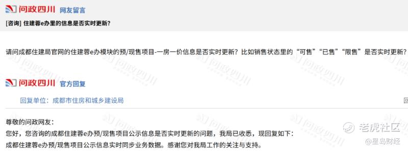 按照2025年9月成都市住房和城乡建设局对网友的回复,“成都市住建蓉e办”的预/现售项目一房一价信息,属于实时同步的业务数据,具备权威性。