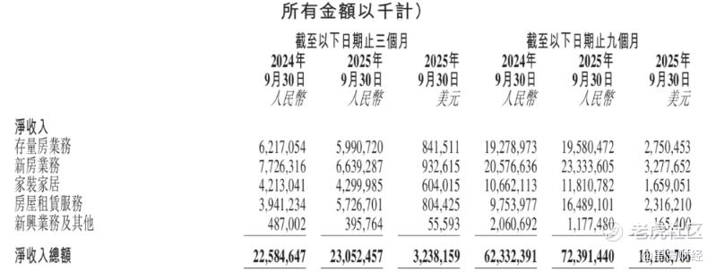 贝壳跨界开发的背后,是主营业务面临增长乏力的挑战。2025年第三季度,贝壳净收入总额230.52亿元,同比增2.07%;归母净利润7.47亿元,同比降36.1%。分业务看,核心的存量房、新房业务净收入分别下降3.64%、14.07%,仅有家装家居微增2.06%,以及房屋租赁服务增长45.30%。