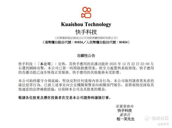 这并非一次小打小闹。攻击持续两个多小时后,平台日常运营已近乎瘫痪——用户无法正常观看,主播被迫下播,本应作为年末重头戏的时代少年团等大型直播,也只能取消。