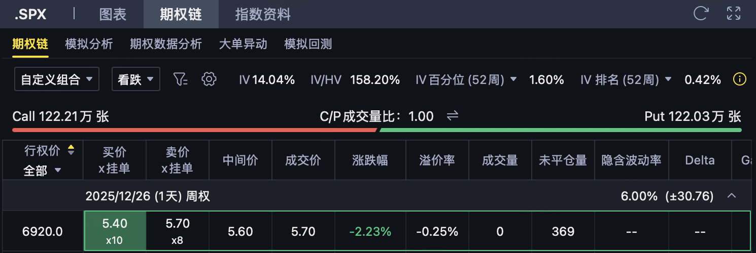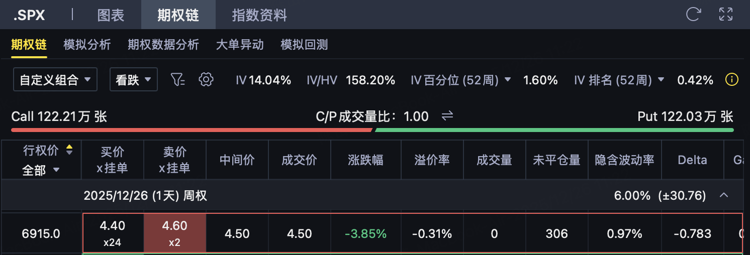 适用情境: 投资者判断 SPX 不会明显跌破 6920 点,更偏向高位震荡或温和上行,希望通过时间价值衰减获取稳定权利金收益,同时严格控制下行风险。