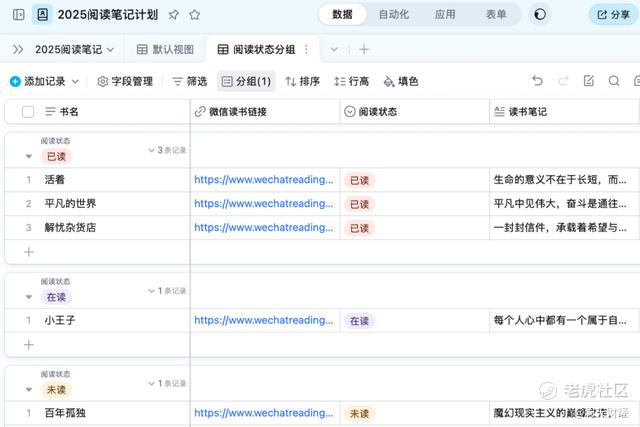 比如,我让AI表格一句话帮我创建我的年度阅读书单,还要自动关联豆瓣的评分,以前在notion建立这个书单和笔记表格,就花了一个多小时,现在一句话大约五分钟内就创建完毕。