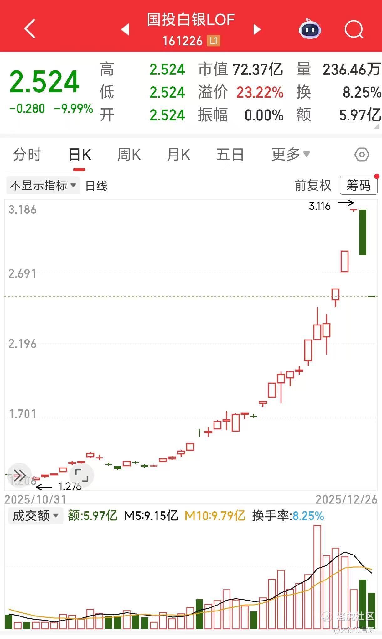下周开始,国投白银每天限购100了,对于套利党来说,是个利好。
