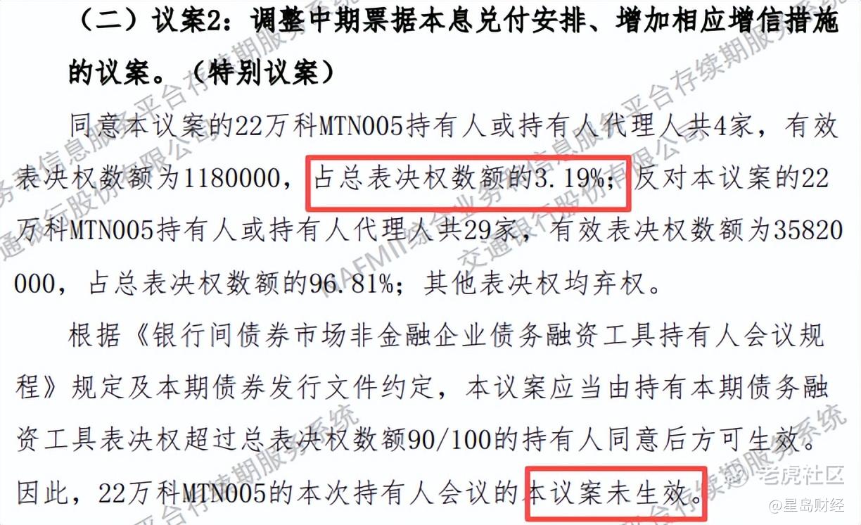 本次会议唯一获得通过的是议案六,该议案延续“22万科MTN004”的缓冲思路,提议将宽限期由5个工作日延长至30个交易日。最终,该议案获得92.11%的有效表决权同意,反对则占7.89%,为万科后续谈判争取了更多时间窗口。