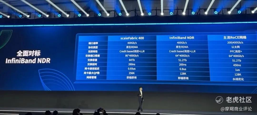 特别值得关注的是曙光scaleFabric网络,其是基于国内首款400G 类InfiniBand的原生RDMA网卡与交换芯片,可实现400Gb/s超高带宽、低于1微秒端侧通信延迟,超节点间的通信性能达到业内领先水平,充分释放万卡超集群算力,并可将超集群规模轻松扩展至10 万卡以上,相比传统IB网络提升2.33倍,同时网络总体成本降低 30%。