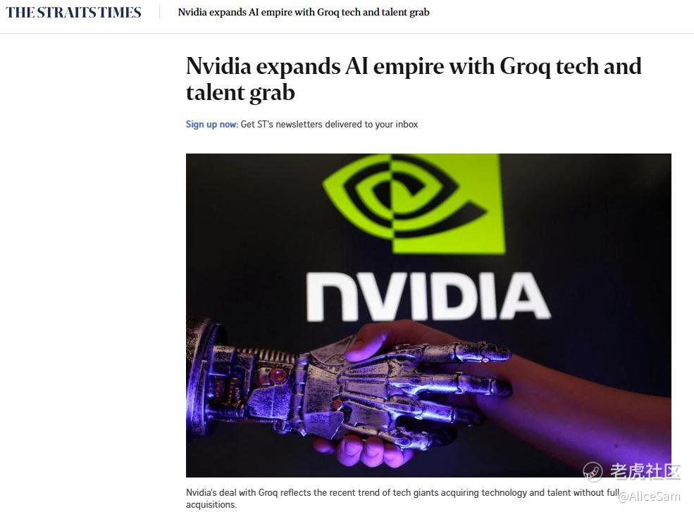 也就是说,英伟达以200亿美元(大约270亿新元)收购Groq,以一种非独家许可交易的结构,类似 一种 “人才并购 acquihire”, 即科技巨头向小型公司支付巨额资金,以换取技术和核心人才,但并非收购目标公司。这交易总价约200亿美元现金,资产范围不含GroqCloud运营实体。这是近期一些科技巨头规避监管审查的常用策略。