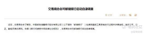 风暴还没停。12月中旬,银行间市场交易商协会发布一则《交易商协会对邮储银行启动自律调查》公告,其中指出,邮储银行在债务融资工具承销发行过程中涉嫌违规,违反公平、公正、勤勉尽责的原则。依据《银行间债券市场自律处分规则》,交易商协会对该行启动自律调查。