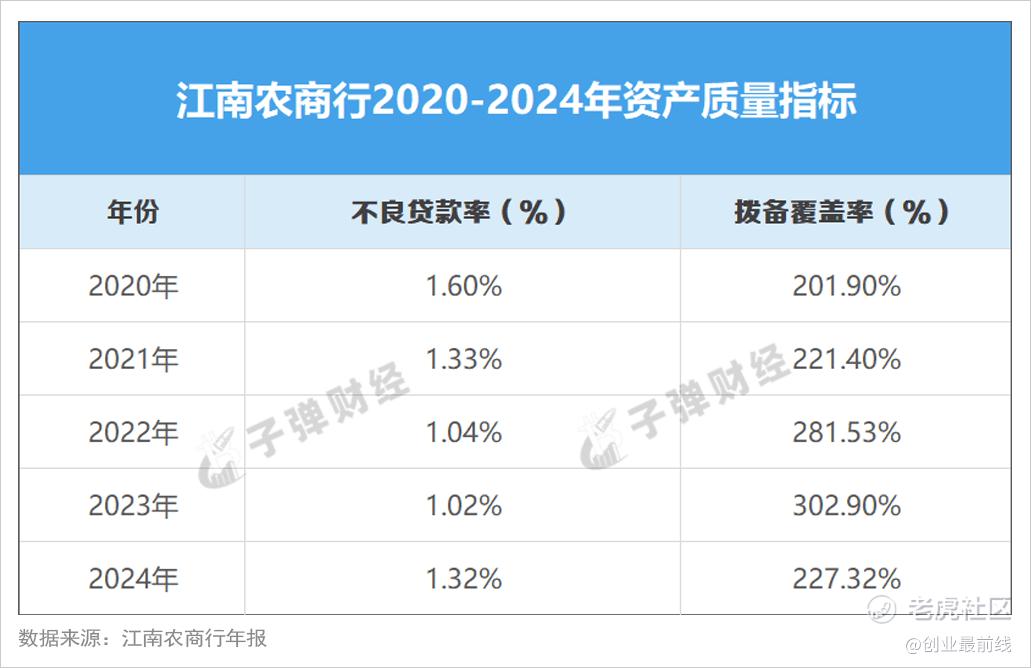 从拨备覆盖率来看,江南农商行从2023年的302.9%降至2024年的227.32%,反映该行的风险抵御能力或发生下滑。