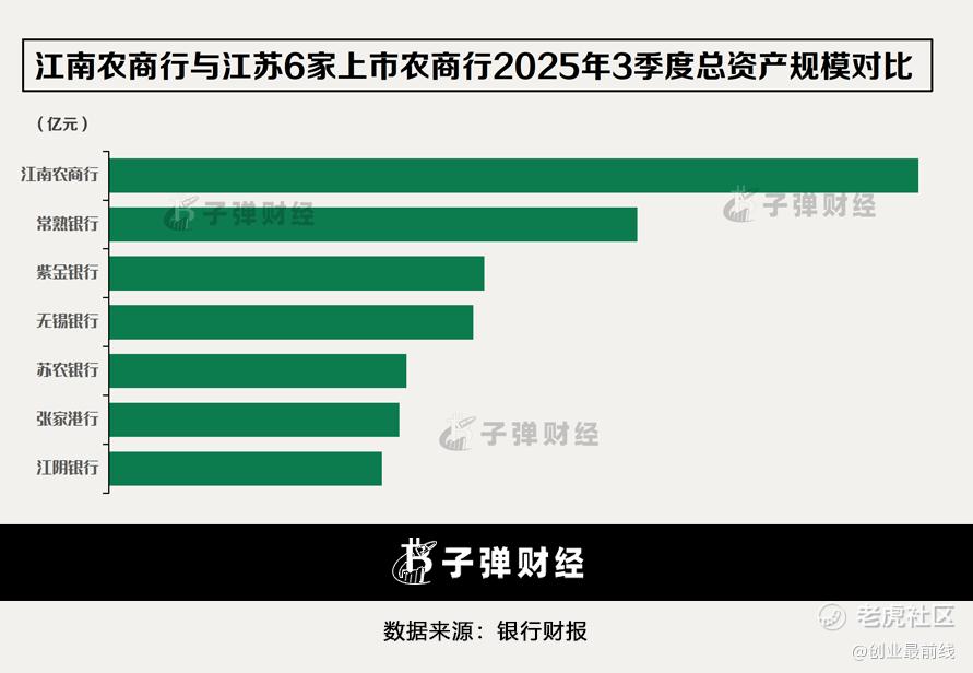 「创业最前线」研究发现,截至2025年三季度,江苏农商行的总资产规模达到6165.1亿元,规模实力远超江苏省6家上市农商行。