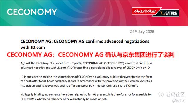 这一战略转身,很快有了实质性落子。就在不久前,京东豪掷约185亿人民币,拿下了欧洲消费电子零售巨头Ceconomy的控股权。要知道,Ceconomy在欧洲零售市场特别是消费电子领域,无疑稳居头部行列,全球会员数量超4300万,员工规模超5万。