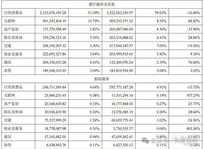 互联网类广告虽实现爆发式增长,但占总营收比重仅16.11%,而日用消费品类占比高达55.63%,却面临10.87%的同比下滑。