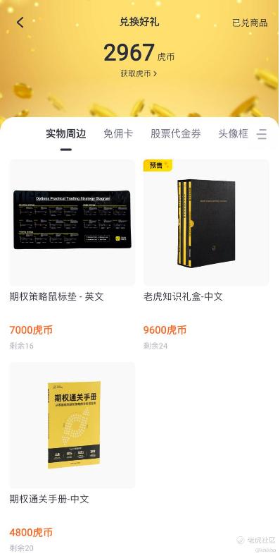我们也可以去虎币中心兑换一些有用的资料,特别是那个期权策略鼠标垫,随看随用,有事没事都可以琢磨一下,上班摸鱼的间隙也可以温习一下,简直太实用了 [龇牙]。那个期权通关手册,也是非常新手易懂的写法,照着操作不难。我们可以好好研究一下,去把这些好用的期权“策略”变成我们自己的长期移动“钱包”。[财迷]
