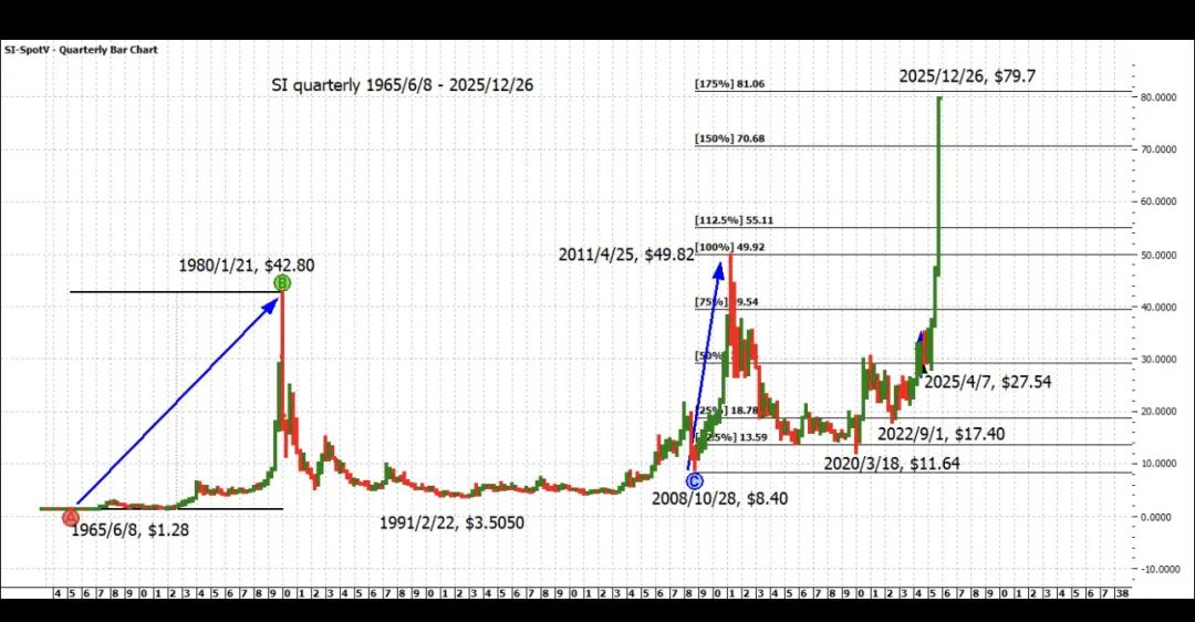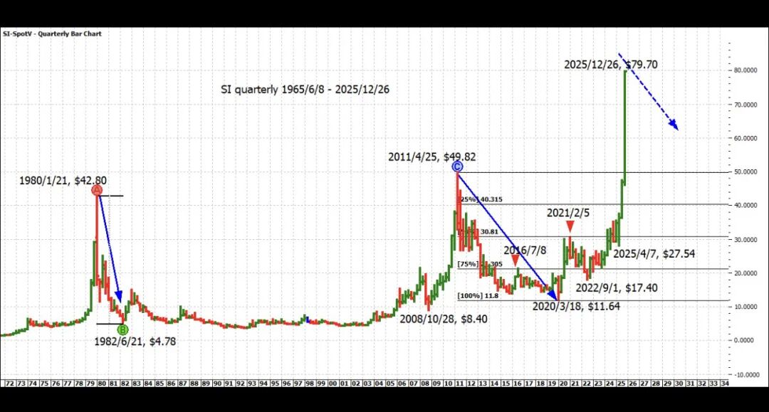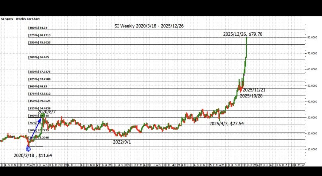白银在周五以最高点$79.70收盘,博得了所有财经新闻的眼球。没进场的问,白银啥时回调?