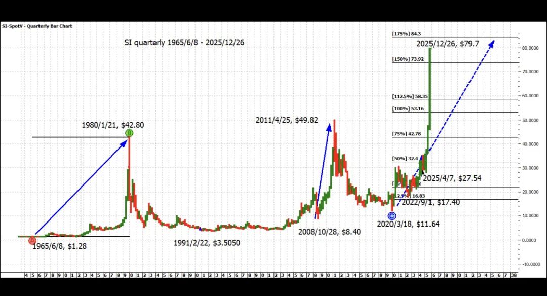 2. 白银的周线图:即将达到400%目标。