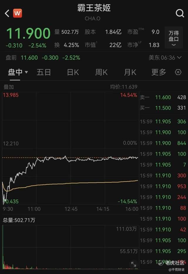 截止到12月29日美股盘前,霸王茶姬股价为11.60美元/股,跌幅为2.52%。
