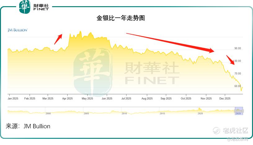 值得关注的是,金银比的极端分化为白银的补涨提供了明确信号。金银比(每盎司金价相当于多少盎司白银的比值)是衡量白银相对估值的核心指标,一般而言,该比值高于90意味着银价相对金价被低估。2025年上半年,特朗普上台后推出的激进关税措施引发市场恐慌,投资者大量买入黄金避险,推动金价快速上行,也使得金银比在4-5月期间飙升至100以上的极端水平。这一信号被市场敏锐捕捉,成为交易员买入白银的明确指引。