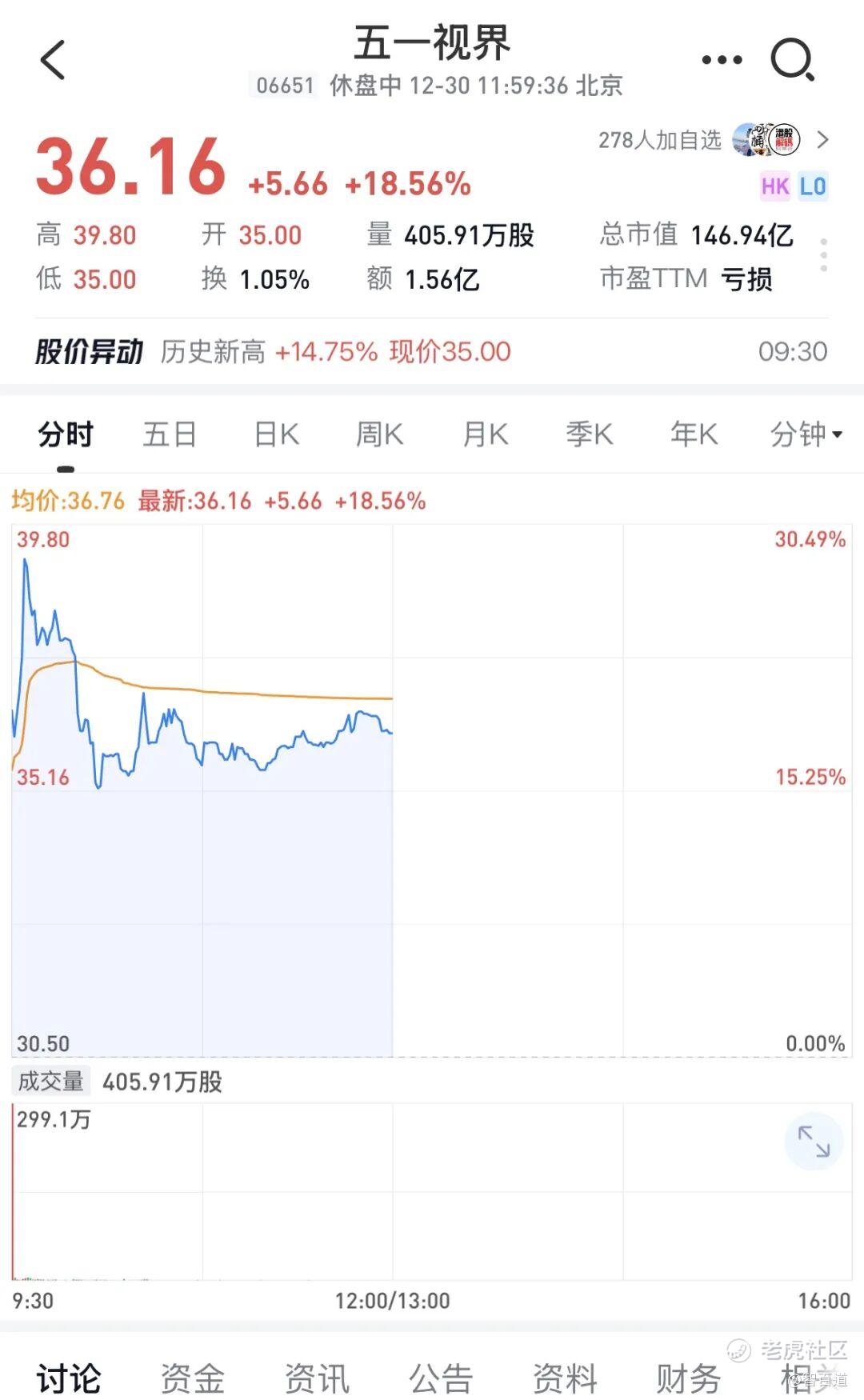 51WORLD开盘价35港元,截至收盘,涨幅扩大至逾18.56%,公司市值一举突破146亿港元。