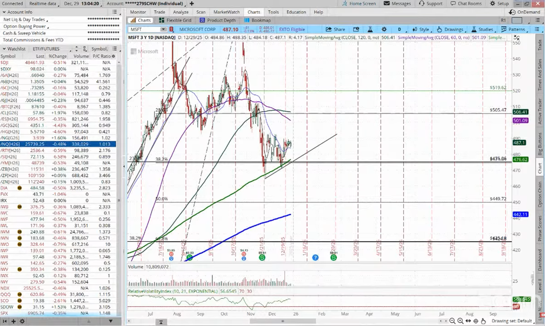 微软在周一继续横盘整理,已经连续多日缺乏方向性选择。Jackson 老师表示,当前微软正经历月线级别的调整阶段,做多期权的时间损耗较高,并不划算。真正值得关注的是开年后的第一轮走势,是先测试500关口,还是回踩前低,再决定后续操作。
