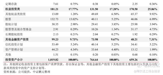 截至2023年末,公司权益类投资资产合计131.50亿元,较2022年末下降22.87%;到了2024年,公司权益类资产又冲到181.21亿元的规模。
