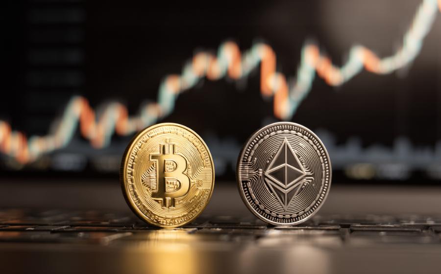 在高峰时期,比特币和以太币的年涨幅分别约为32%和44%。