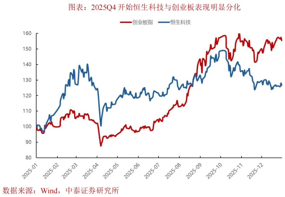 25年四季度,A股市场与港股市场表现明显分化,这一差异特征十分明显。如果2026年外部仍偏紧,国内更现实的抓手是资本市场的预期管理。主要表现为:以汇金为代表的中长期资金托底、IPO节奏与减持规范更偏收紧,形成一个“健康”的慢牛框架。在总量政策尚未完全发力的“真空期”,管理层对资本市场的“呵护”或将更直接地通过资金面来体现。