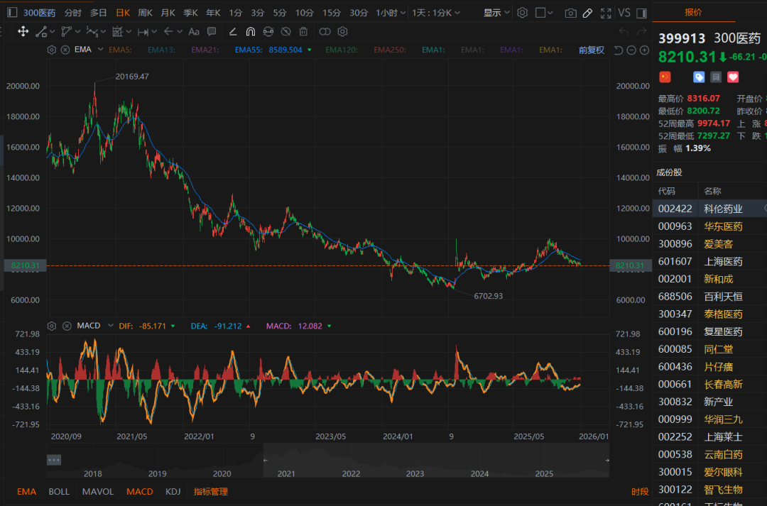 注意:我不是推荐医药,这只是纯技术指标探讨。去年我也BB过好多板块,后来呢?它们集体表演了“什么叫折戟沉沙”。
