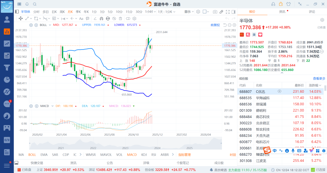 而对于科技股来说这个是牛市必须配置的板块了,这个毋容置疑,尤其是ai的叙事,中美谁都输不起,所以会涨,但过程会比较的难受,这个时候头寸管理和节奏感就非常的重要了,未来a股的波动率会持续走低,也就是给你低估的机会越来越少了,变成了横盘调整位置,偶尔的大跌洗掉坐轿子的人了,那么既然我们知道他们走走牛,那就都买入就好了,同时不知道拉的是那个,就那个涨了就抛售,那个跌了就 买入,那么自然反而是增强的效果,省的去猜测那个会涨,那个会跌,难度系数就增大了,但坏处就是可能赚的没有单一板块的多,但长期算下来择时不一定会比这个收益多,关键是他适合的是普通人的玩法了,不需要费心就可以了。