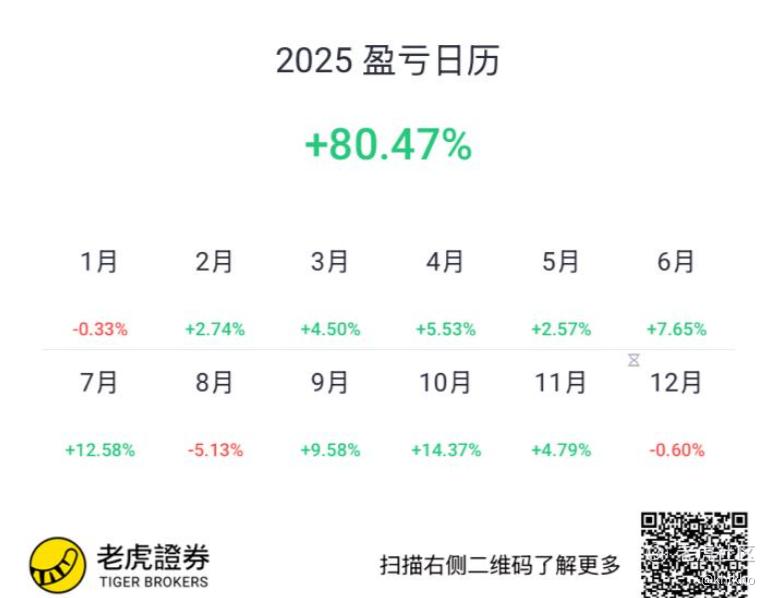 2025我就非常感恩,年度总收益+80%, 大大的超过了我年头的期望,真开心。[开心] 1–6月稳打稳扎,每月小阳线。7月踩中航运旺季,单月+12.58%,8月快速回撤 -5.13%,9–11月把利润稍稍的滚大了一丢丢,12 月收官再次微跌 -0.6%。全年最大回撤为8.4%,收益曲线也算得上是一个“爬楼梯”形态。[鬼脸]
