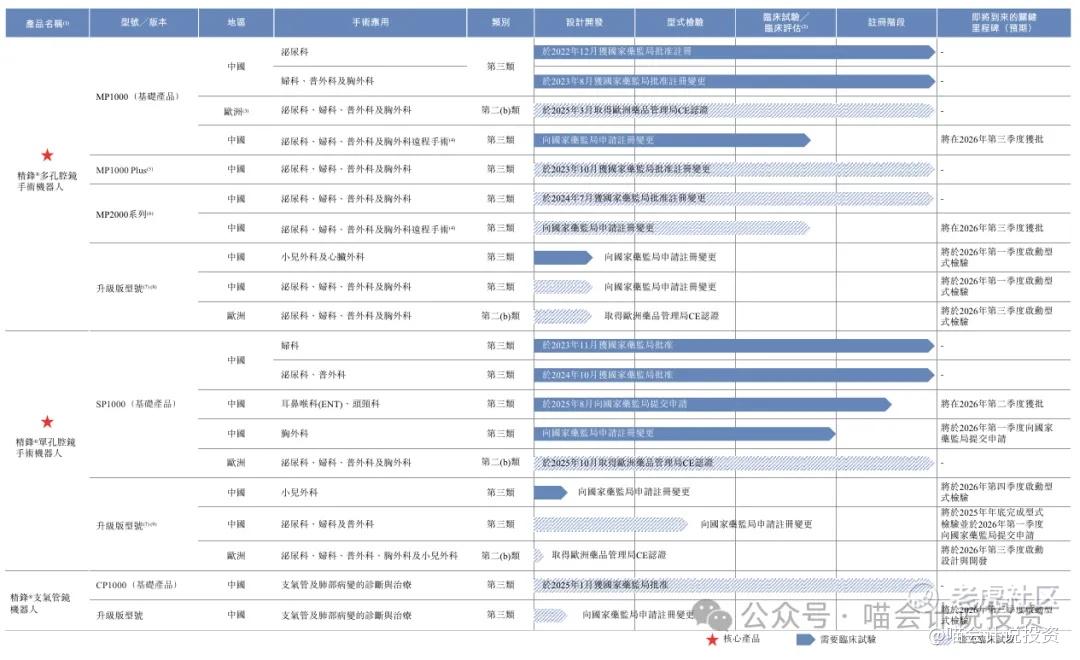 根据弗若斯特沙利文的资料,精锋医疗是中国首家、全球第二家同时取得多孔腔镜手术机器人、单孔腔镜手术机器人及自然腔道手术机器人注册审批的公司。精锋医疗分别于2022年12月、2023年11月及2025年1月收到精锋®多孔腔镜手术机器人、精锋®单孔腔镜手术机器人及精锋®支气管镜机器人的国家药监局首次注册批准。
