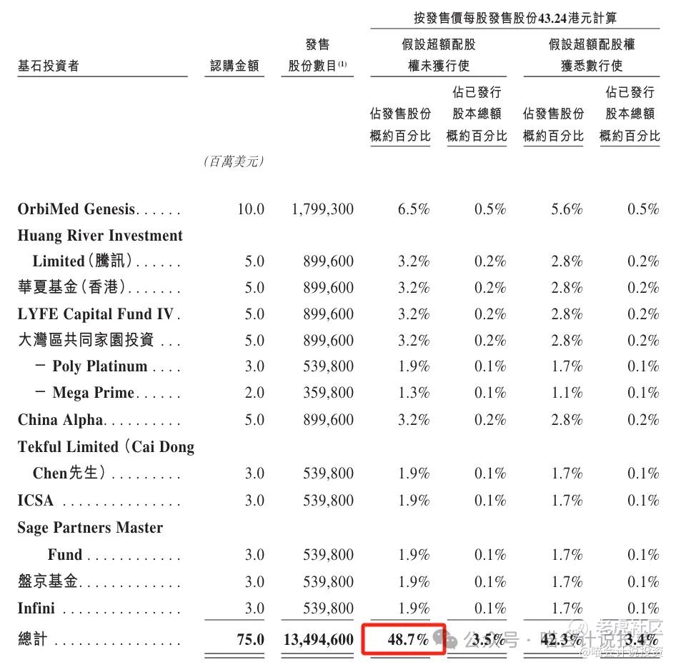 基石投资者:别老盯着腾讯和阿布扎比投资局看,Orbimed和LYFE才是含金量最高的基石,喵老师说过很多遍,当你看不懂药和械的时候,就找Orbimed和Lilly Venture的名字,当时没提LYFE,这家也是大大的加分项,这样的基石名单,比例还拉满了(10分)。