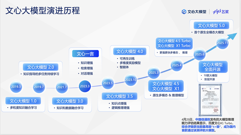 历经六年深耕,百度在2025年陆续推出原生全模态模型文心5.0、多模态模型文心4.5系列,以及深度思考模型文心X1系列,在多项权威评测中持续位居中文大模型第一梯队。