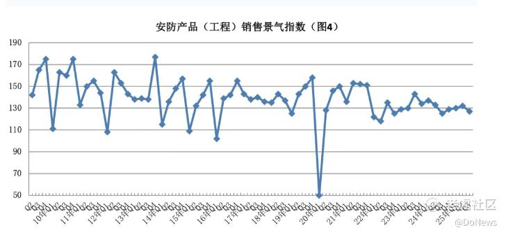 从销售端来看,安防产品(工程)销售景气指数达127,同比上升2点,43%的企业实现销售额增长,41%的企业保持销售持平,市场需求逐步企稳。